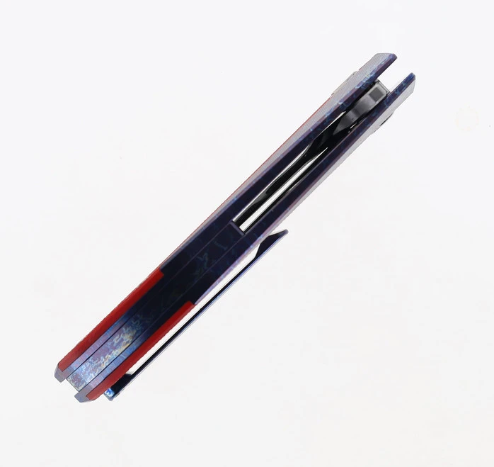 TwoSun Flipper Folding Knife Color Titanium Handle 14C28N Plain Edge TS408-14C28N-Col