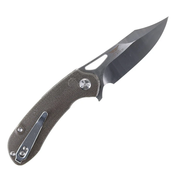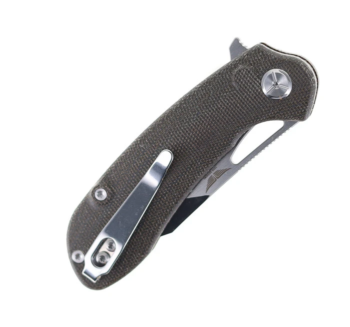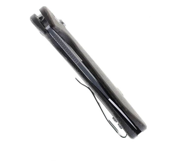 TwoSun Button Lock Folding Knife Black Linen Micarta Handle D2 Plain Edge TS399