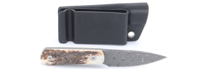 TwoSun Fixed Blade Knife Stag Horn Handle S90V Damascus Plain Edge TS150-Staghorn