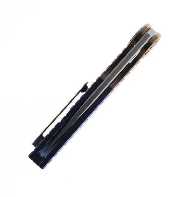 TwoSun Flipper Folding Knife Color Titanium Handle 14C28N Plain Edge TS408-14C28N-Col