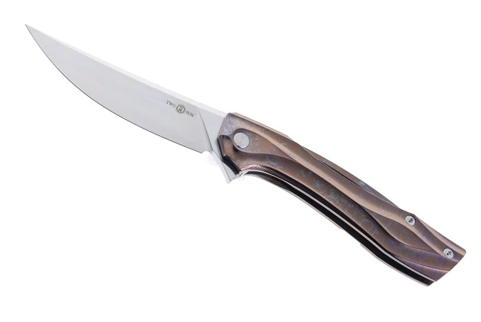 TwoSun Folding Knife 14C28N Titanium Handle Plain Edge TS279