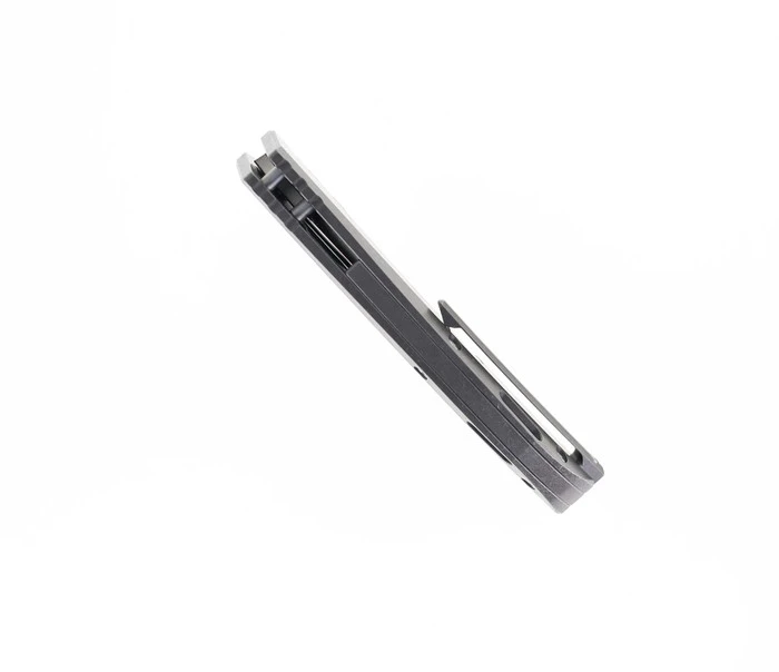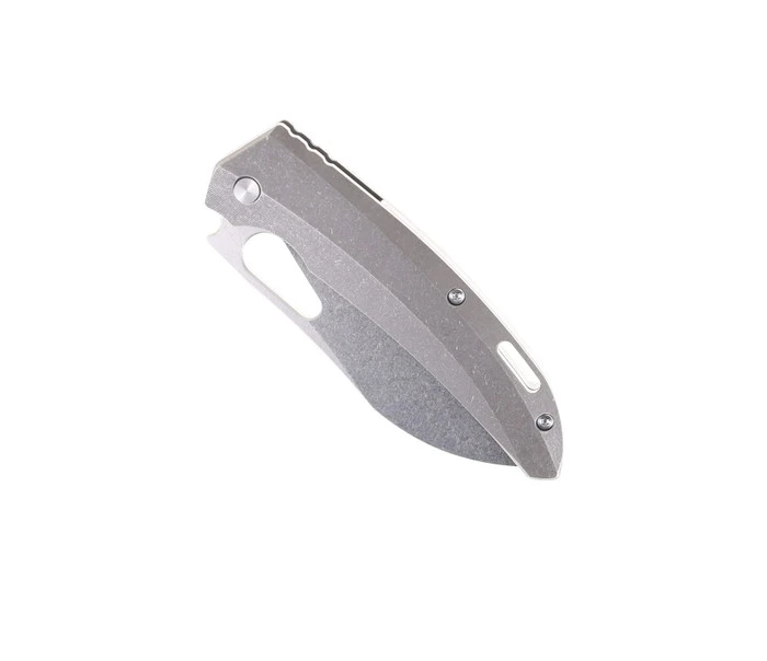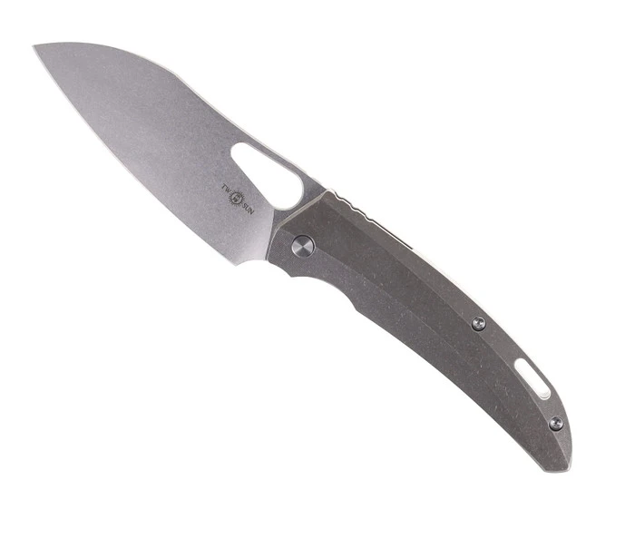 TwoSun Folding Knife Black Titanium Handle D2 Plain Edge Stonewash Finish TS376-D2-StoneWash