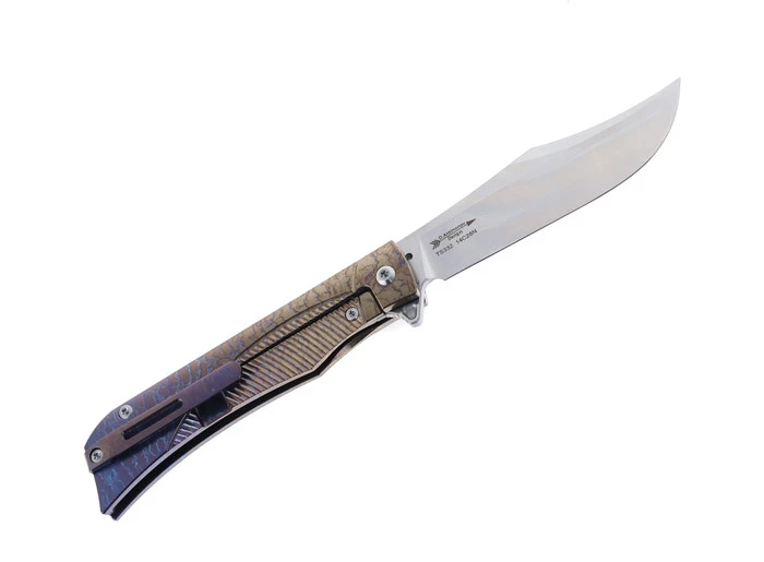 TwoSun Flipper Folding Knife Color Titanium Handle 14C28N Plain Edge TS408-14C28N-Col