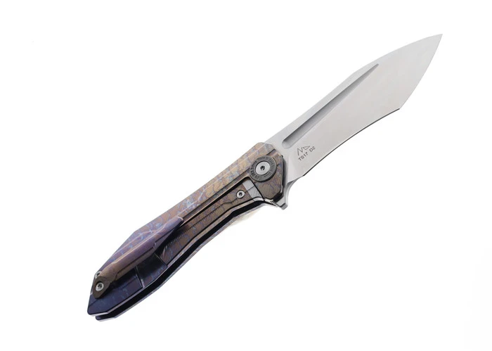TwoSun Flipper Folding Knife Color Titanium Handle 14C28N Plain Edge TS408-14C28N-Col