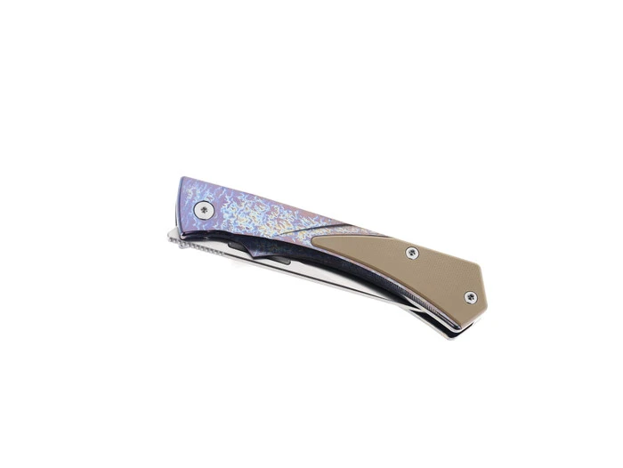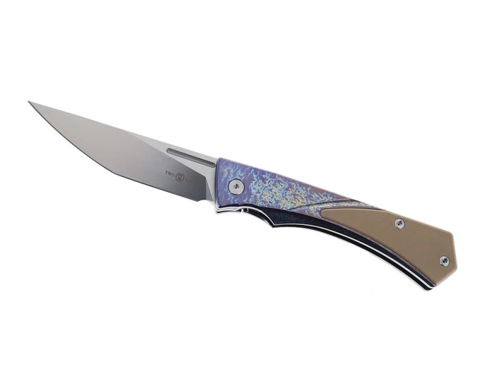 TwoSun Flipper Folding Knife Color Titanium Handle 14C28N Plain Edge TS408-14C28N-Col