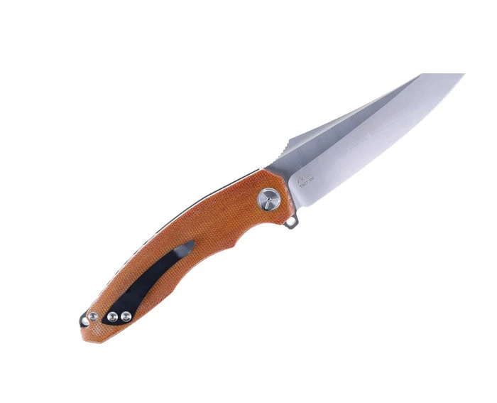 TwoSun Folding Knife Light Brown Micarta Handle D2 Clip Point Plain Edge TS27-LB