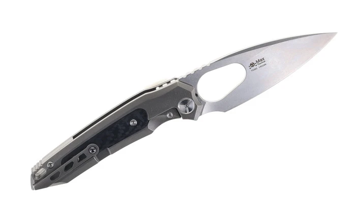 TwoSun Folding Knife Max Tkachuk Front Flipper Titanium/Carbon Fiber Handle 14C28N Plain Edge TS382