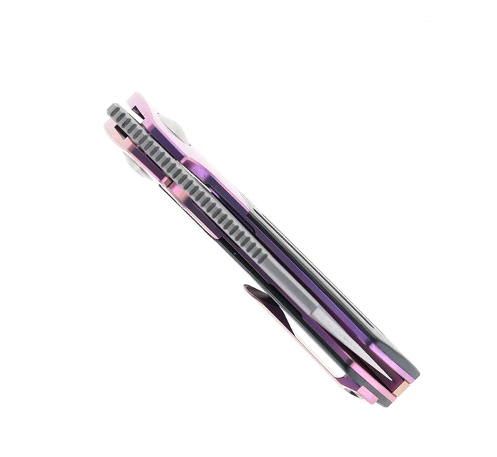 TwoSun Flipper Folding Knife Color Titanium Handle 14C28N Plain Edge TS408-14C28N-Col