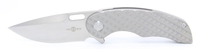TwoSun Foldnig Knife Green Titanium/Carbon Fiber Inlay Handle M390 Plain Edge TS186-M390-Green