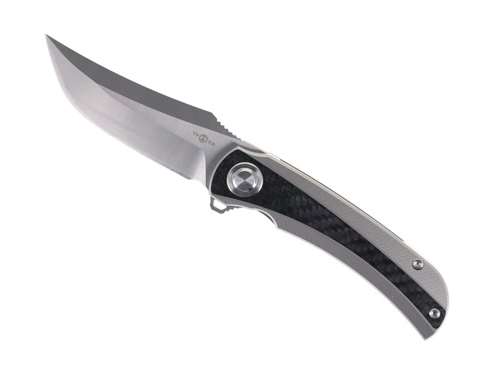 TwoSun Flipper Folding Knife Color Titanium Handle 14C28N Plain Edge TS408-14C28N-Col