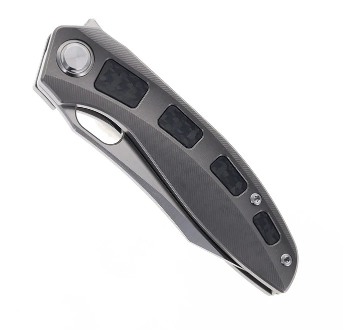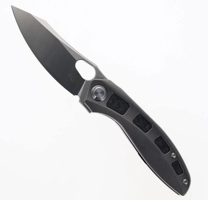 TwoSun Foldnig Knife Green Titanium/Carbon Fiber Inlay Handle M390 Plain Edge TS186-M390-Green