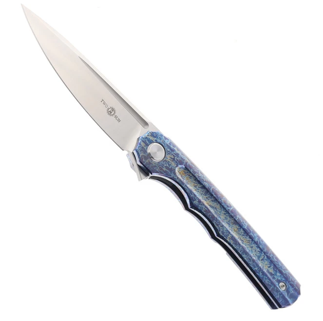 TwoSun Flipper Folding Knife Color Titanium Handle 14C28N Plain Edge TS408-14C28N-Col