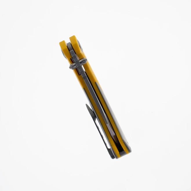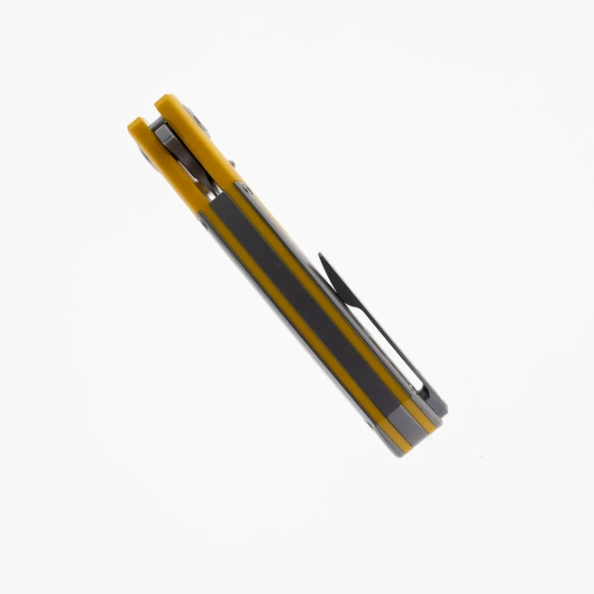 Handle is bright yellow G10 inlay Sandwashed titanium alloy