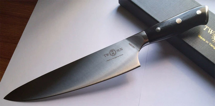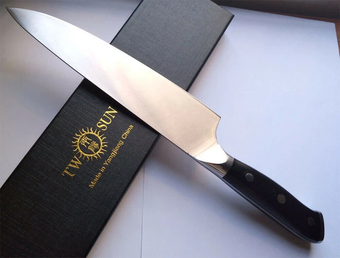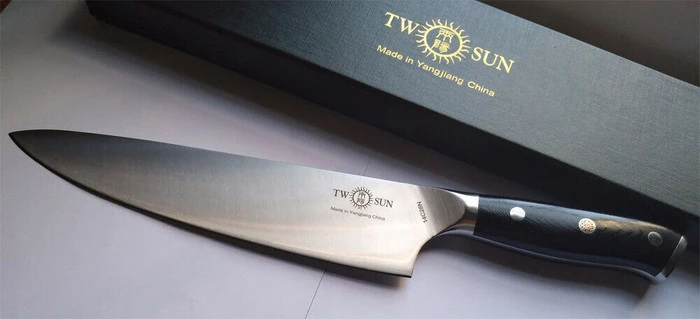 TwoSun Kitchen Chef Fixed Blade Knife Black G10 Handle 14C28N Plain Edge TS977-14C28N