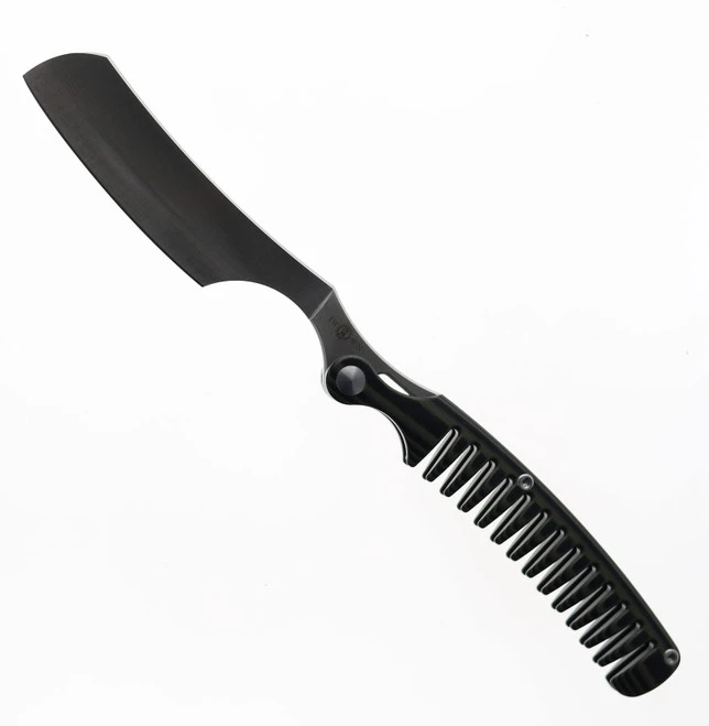 TwoSun Knives TS185 Razor Blade Folding Knife Green/Black G10 Comb Shaped Handle 14C28N Steel