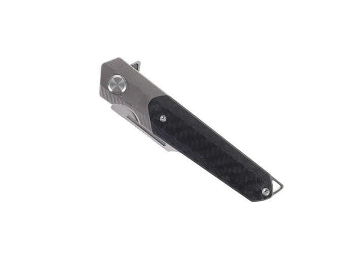 TwoSun Pocket Knife Black Carbon Fiber/Titanium Handle D2 Plain Edge TS290-D2
