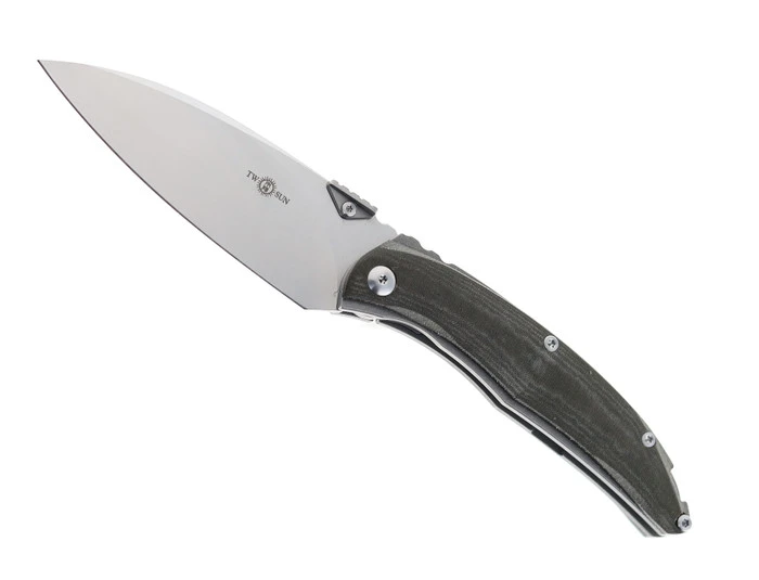 TwoSun Foldnig Knife Green Titanium/Carbon Fiber Inlay Handle M390 Plain Edge TS186-M390-Green