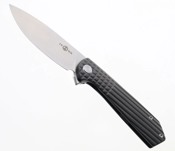 TwoSun Folding Knife 14C28N Titanium Handle Plain Edge TS279
